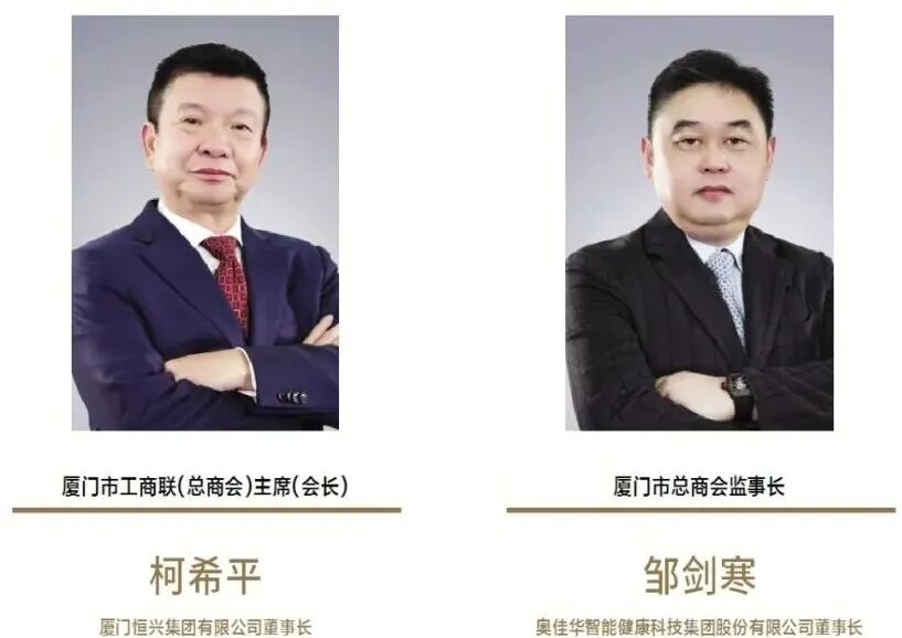 ◆福建省政协委员、奥佳华科技集团董事长邹剑寒当选厦门市总商会监事长
