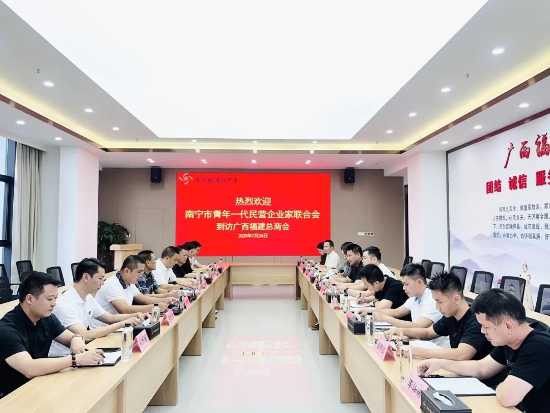 7月24日,南宁市青年一代民营企业家联合会会长柯晓泽、监事长林国凯;南宁市委统战部非公有制经济代表人士工作科科长李强一行10余人到访广西福建总商会。总商会监事长李康明对其表示热烈欢迎。
