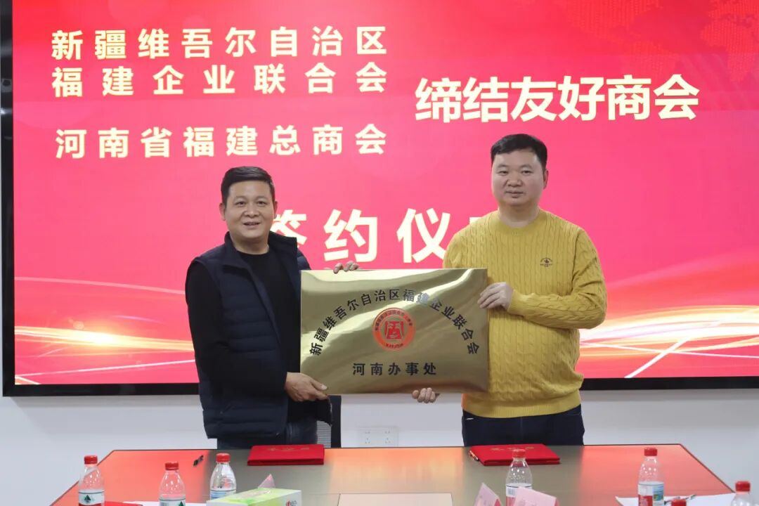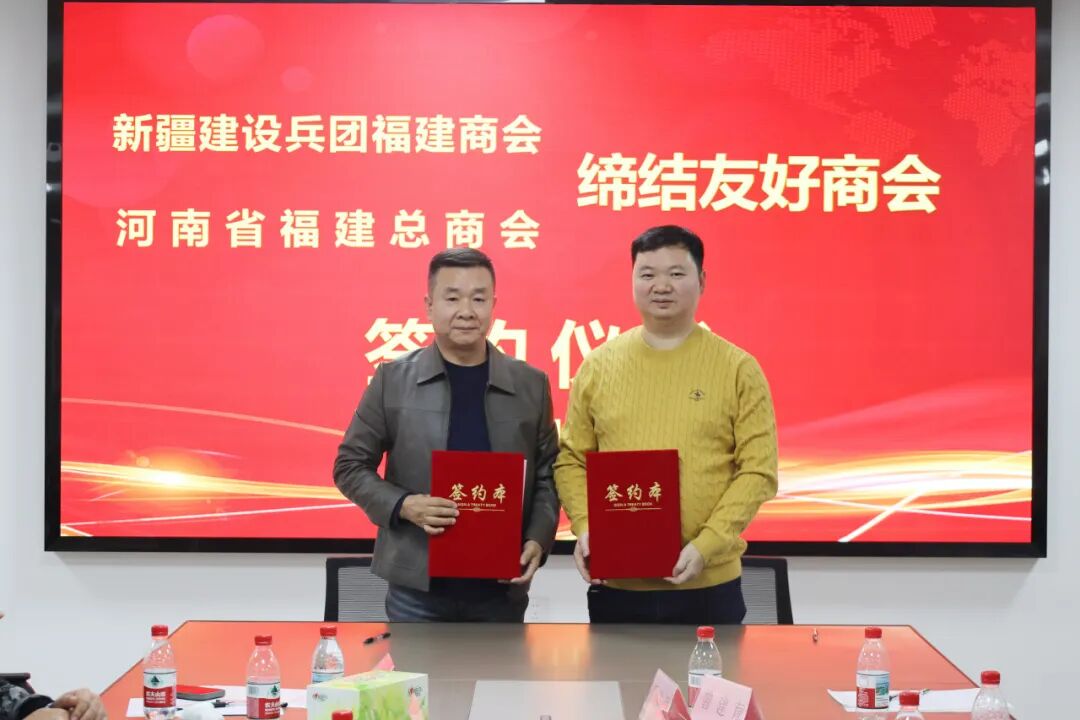 会长吴文辉,监事长苏俊雄,执行会长兼秘书长陈平华,执行会长颜顽梗、李建加、吴礼强、杨昆,常务副会长郑文,副会长黄文全、杜种元、曾建育、王细明,专职副秘书长卓文盛,理事陈禄官,监事王斌等人热情接待,双方进行了座谈交流,就经济态势、商会管理、合作发展等事宜进行了沟通交流。会上,河南省福建总商会与新疆维吾尔自治区福建商会、新疆生产建设兵团福建商会、陕西省闽商商会签订缔结友好商会协议。