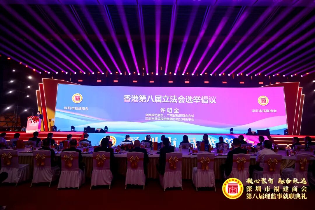 全国政协委员、广东省福建商会会长许明金代表广东省福建商会,向新当选的深圳市福建商会第八届理监事会领导班子表示热烈祝贺。许明金会长向广大闽籍乡亲发表了香港第八届立法会选举倡议。他指出,立法会是香港特区管治架构的重要组成部分,当前特区政府正全力发展经济、改善民生,很多政策都必须经过立法会通过才能落实。选出有能力、有担当、爱国爱港的有识之士担任立法会议员至关重要。他倡议广大闽籍乡亲动员港籍亲友在12月7日返港参与投票,为“一国两制”行稳致远,保持香港长期繁荣稳定贡献力量。