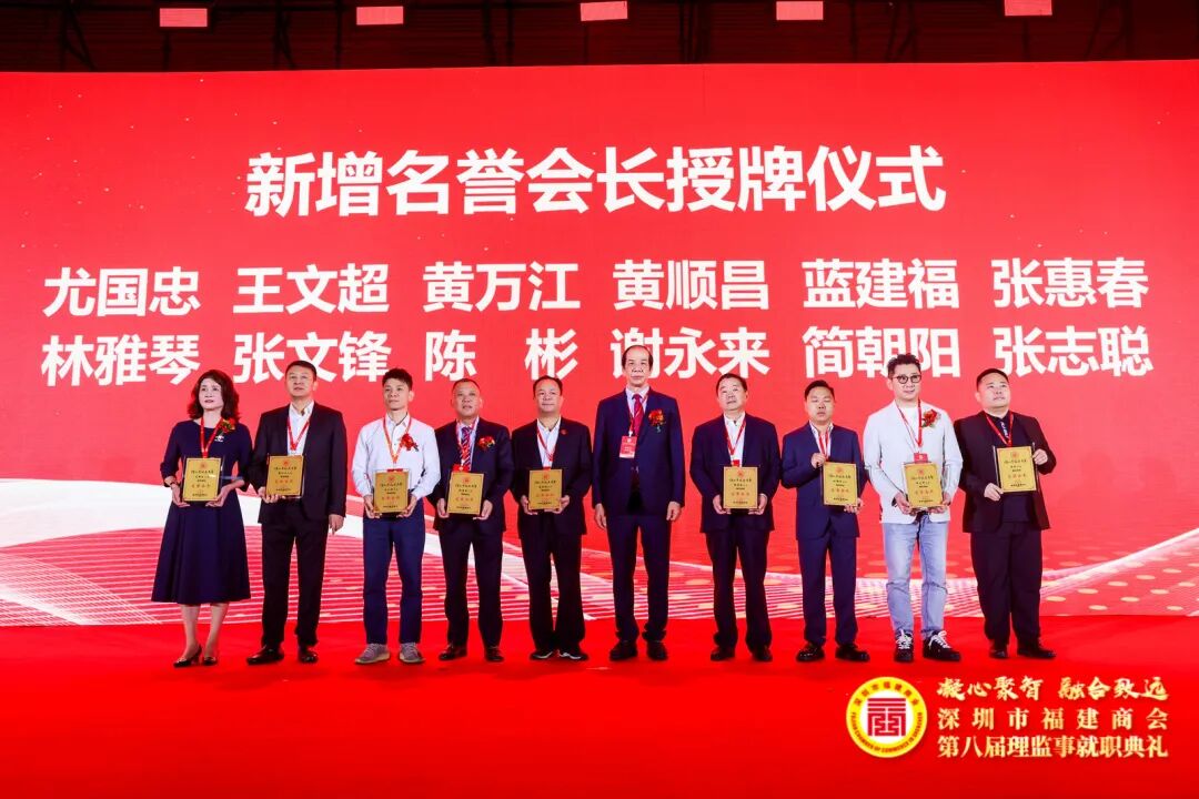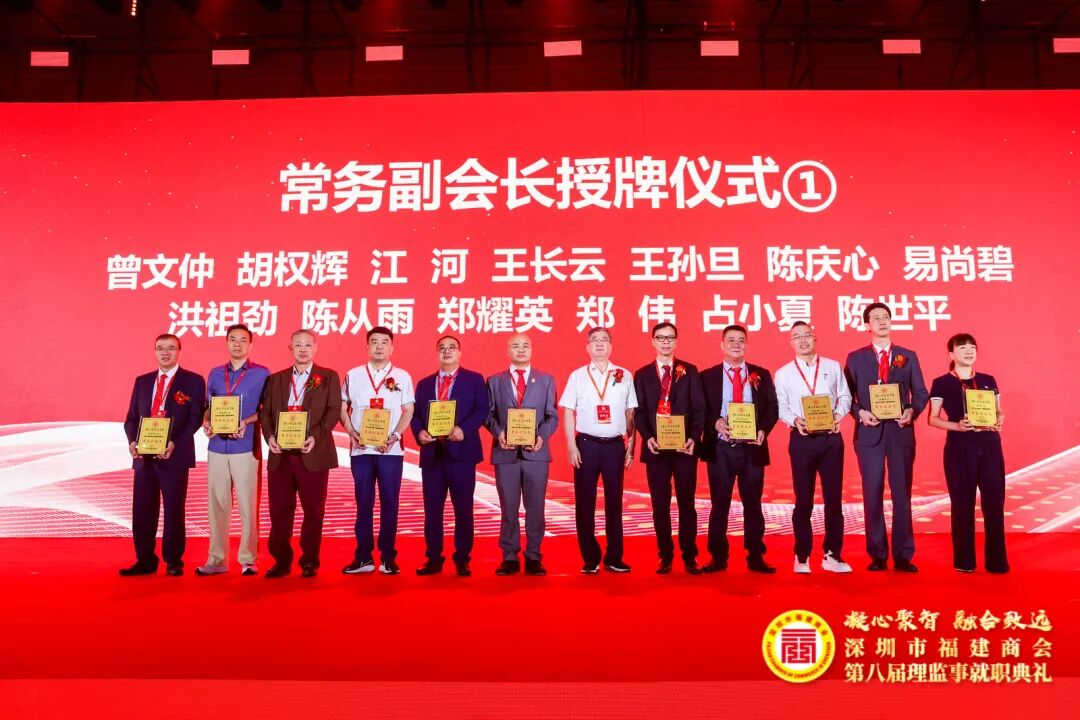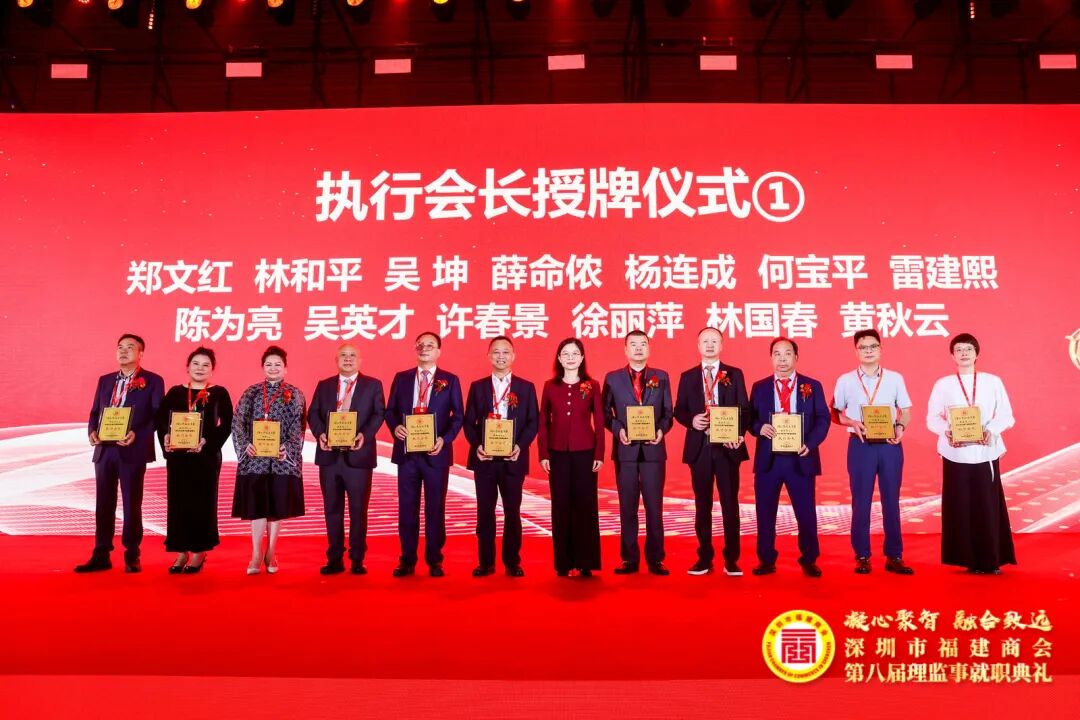 会上,还举行了授牌仪式。广东省福建商会名誉会长郑文红、执行会长徐丽萍、常务副会长刘三川当选为深圳市福建商会第八届执行会长。