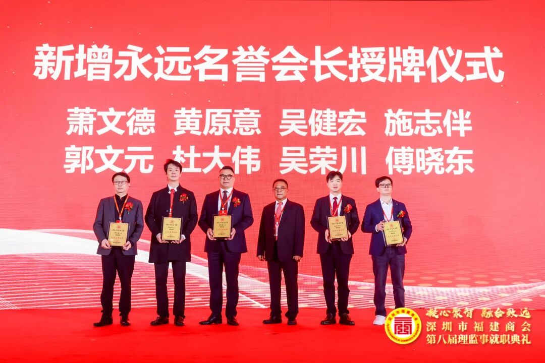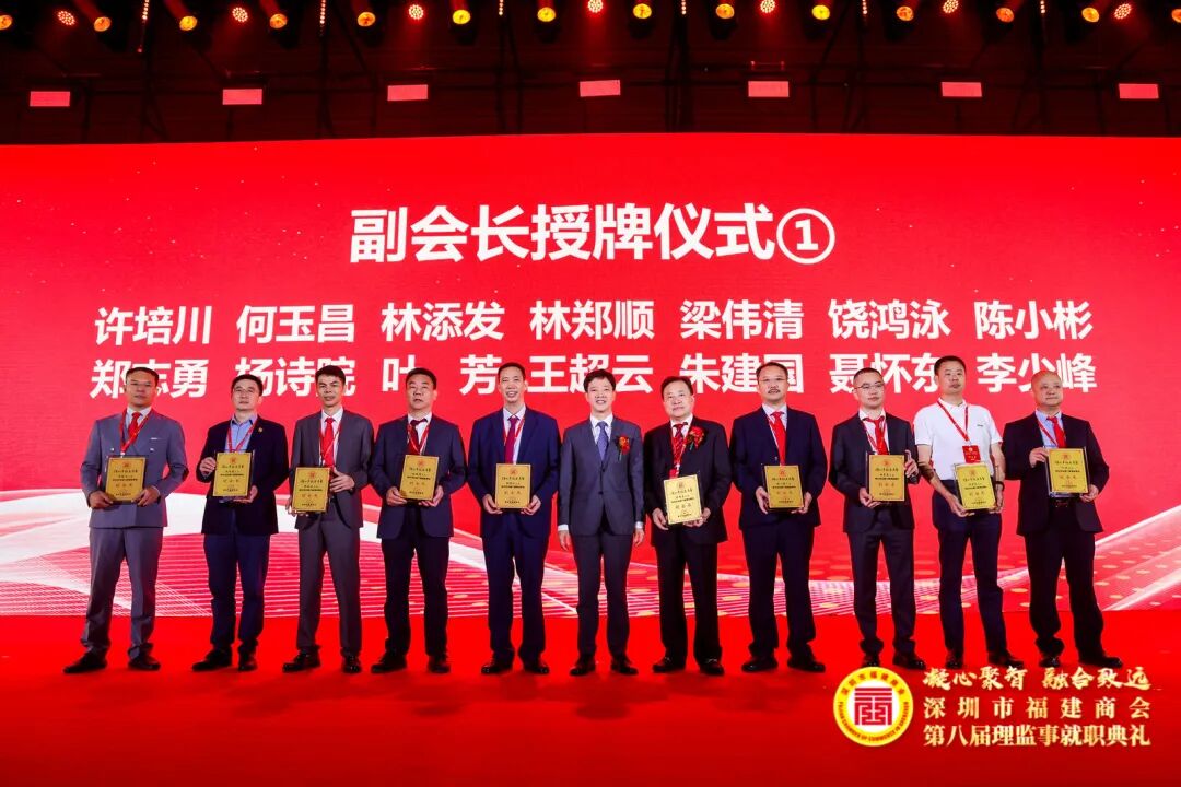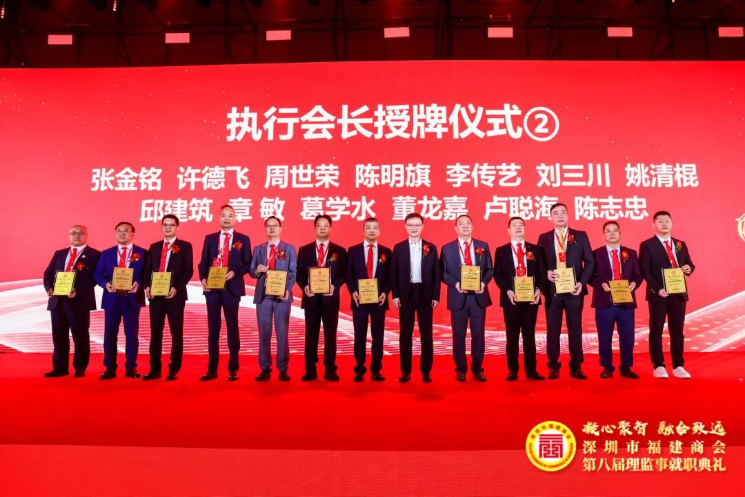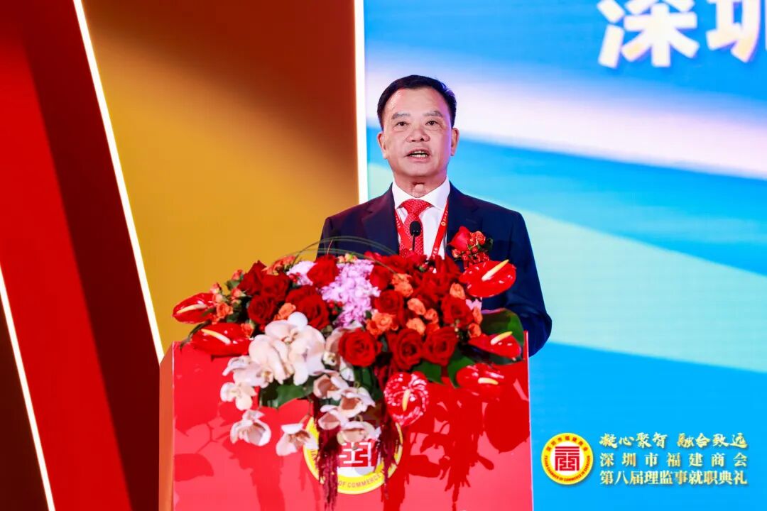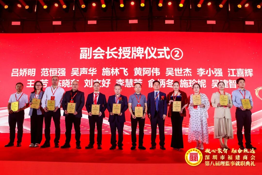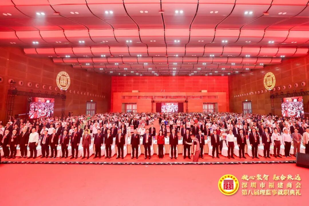 2025年11月8日,深圳市福建商会第八届理监事就职典礼在深圳会展中心隆重举行。信义集团董事施能狮连任商会会长,广东省福建商会名誉会长、都市丽人董事长郑耀南连任理事长,广东省福建商会名誉会长、深圳华捷运国际货运代理有限公司董事长吴志民连任监事长,荣誉制罐总裁林炜坚连任执行会长兼秘书长。福建和深圳两地领导嘉宾,各地闽籍商会代表,深圳市福建商会全体会员等1000多人共襄盛举,共话发展。全国政协委员、广东省福建商会创会会长、深圳市福建商会创会会长李贤义,全国政协委员、广东省福建商会会长许明金,广东省福建商会执行会长林学凤,常务副会长陈秋亮,副会长柳滨芳参加本次会议。