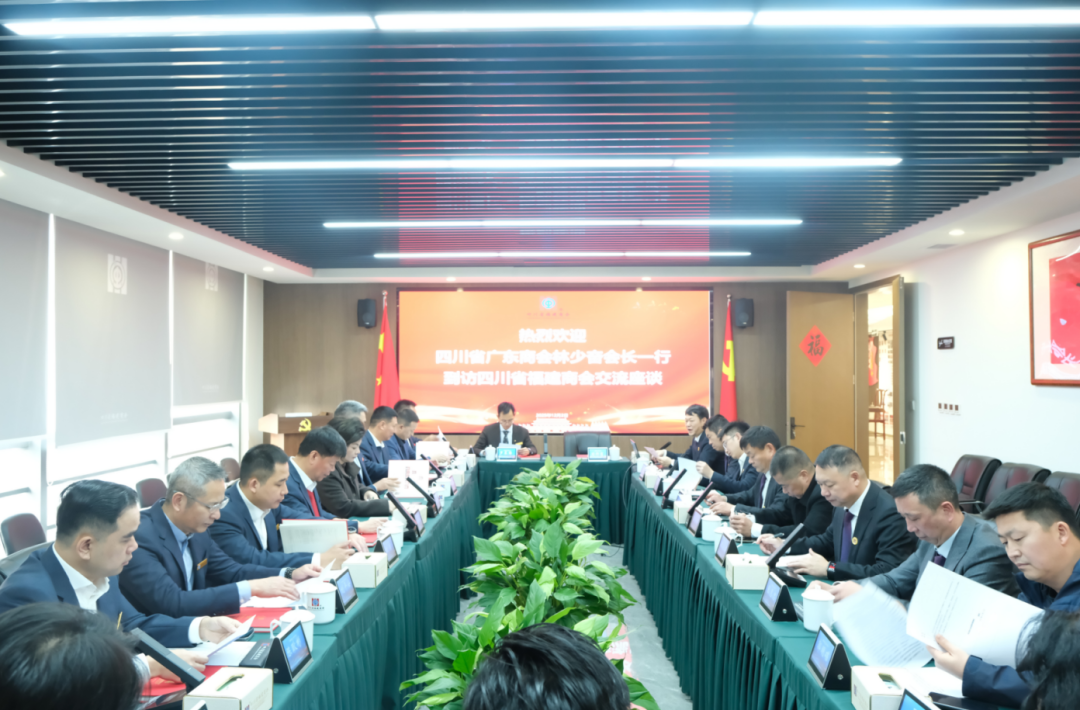 12月2日下午,四川省广东商会会长林少奋、轮值会长李慧娟,常务副会长谢育、潘伟坚,副会长杨永成、利平安、曾繁强、陈耿彬、陈锦通、温志威、林秋杨,理事符邦育、罗东博,青委会常务副主席连凯洲、副秘书长钟惠一行到访四川省福建商会交流座谈。四川省福建商会党委副书记、执行会长翁荣传,执行会长曾振辉,轮值会长蔡龙斌,常务副会长陈发宝,轮值副会长张惠忠、许晓东,秘书长吴良才,执行秘书长李清灵、郭明碟参加座谈。