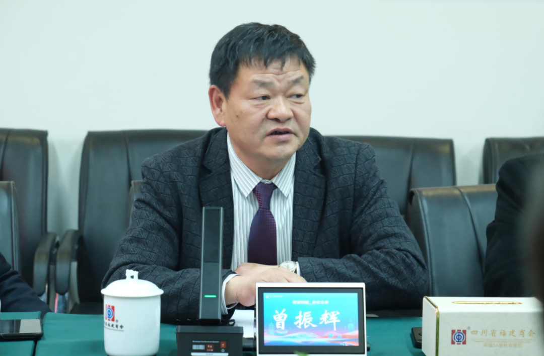 曾振辉代表四川省福建商会向林少奋一行的到访表示热烈欢迎和感谢,并向大家介绍了四川省福建商会的办会理念、组织机制、运营与服务模式、文化建设和发展情况。