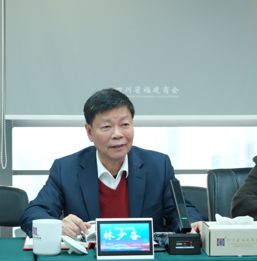 林少奋表示,四川省福建商会始终秉承“爱拼敢赢,义利相兼”的精神,在服务会员、促进川闽经济合作、履行社会责任等方面成就斐然,堪称在川异地商会的标杆典范;完善的运作机制、创新的会员服务、浓厚的乡情纽带以及广泛的社会影响力,值得我们深入学习借鉴;此次专程拜访,正是希望以“兄弟商会”之情谊为桥,以共谋发展为使命,与福建商会交流宝贵经验。他表示,粤商与闽商的血脉里,镌刻着各自鲜明的精神底色,两省商会虽各有特色,却始终心手相连,在助力四川经济社会发展、推动区域协同、参与公益事业等领域并肩前行,结下了深厚的战斗情谊;希望深化两会日常联络机制,共探新时代商会发展新路径;积极搭建川粤闽企业合作平台,让会员企业在合作中壮大,让川粤闽情谊在共赢中升华,共谱“闽粤同心、川蜀共兴”的新篇章!