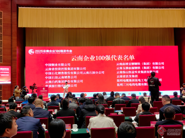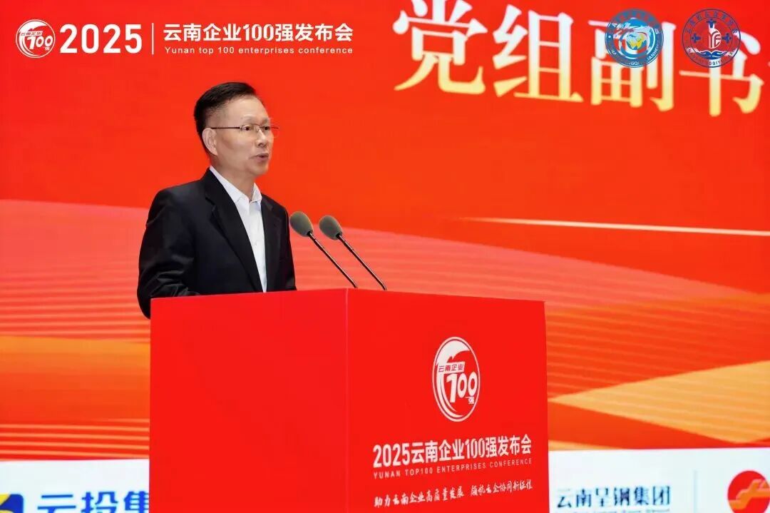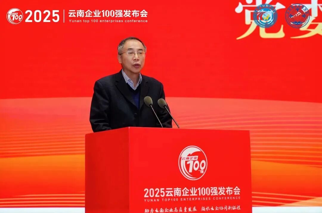 12月6日,省企业联合会、省企业家协会在昆明举办“2025云南企业100强”发布会,省人大常委会党组副书记、副主任宗国英,中国企业联合会、中国企业家协会党委书记、常务副会长兼秘书长朱宏任,省工业和信息化厅党组成员、副厅长薛贵辉,省投资促进局党组成员、副局长赵怀君,省总工会党组成员、副主席金勇,省发展和改革委员会二级巡视员刘经喜,省科学技术厅二级巡视员张继红,省人力资源和社会保障厅二级巡视员吴考祥,省商务厅二级巡视员林德忠,省统计局二级巡视员李成友,云南企联名誉会长、国家一级战斗英雄史光柱,中国铜业党委常委、云南铜业董事长、党委书记孔德颂,曲靖市人民政府党组成员、副市长王远,玉溪市人民政府党组成员姚学松,联通昆明市分公司党委书记、总经理朱瑜,云南省福建总商会执行会长吴莉蓉等领导出席发布会。