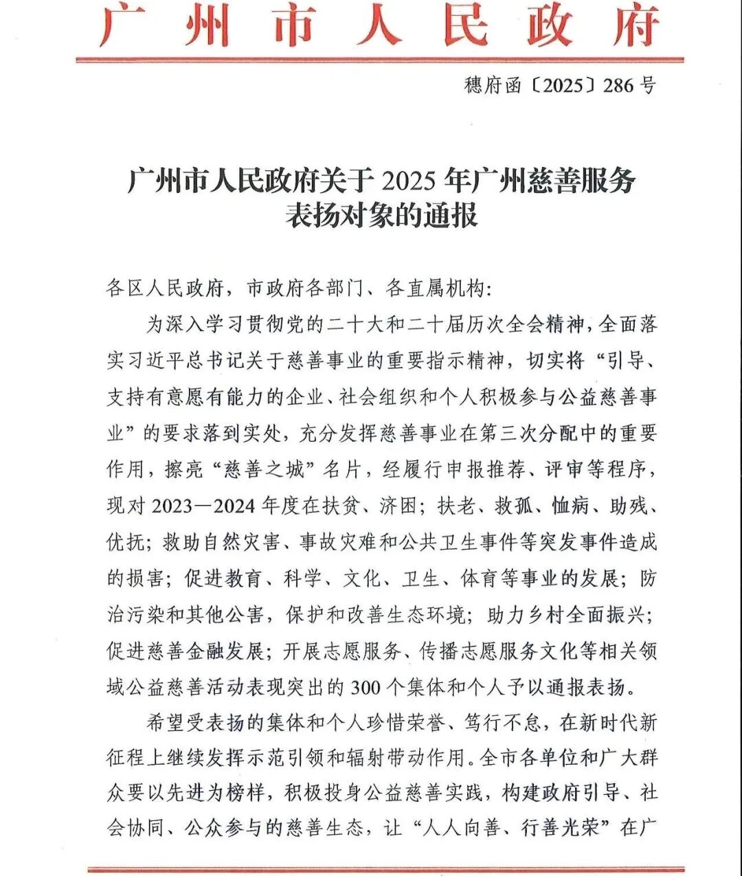 近日,广州市人民政府发布通报,对2023-2024年度公益慈善领域表现突出的300个集体和个人予以表彰,旨在深入贯彻党的二十大精神与习近平总书记关于慈善事业的重要指示,擦亮广州“慈善之城”名片,凝聚社会向善力量。广东省福建商会秘书长、广东学山投资有限公司董事长朱东炫凭借在公益慈善领域的扎实践行与突出贡献,获评先进个人。