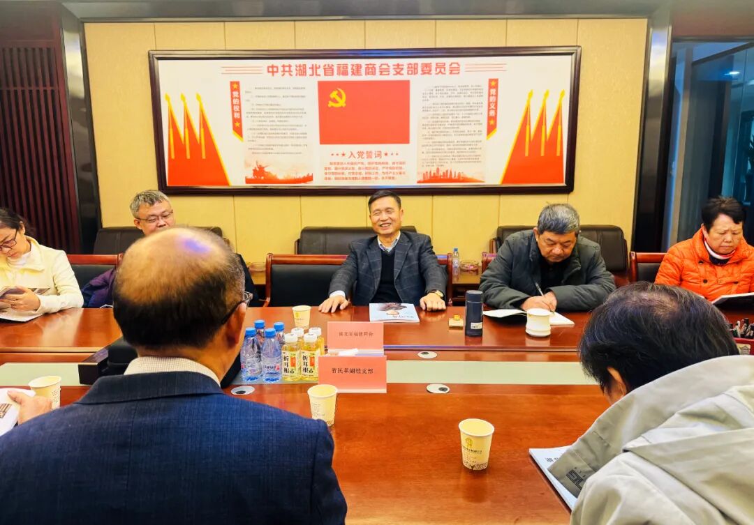 2025年12月12日下午,湖北省福建商会与民革湖北经济学院支部举行校企合作专题座谈会,原民革中央委员,湖北省民革副主委陶前功,民革湖北省委委员,湖经支部主委黄小舟,湖北经济学院教授戴德艺等一行到访,商会党支部书记王清白,执行秘书长陈玉荣热情接待,双方围绕如何高效整合资源、精准培育与输送应用型人才进行了深入务实的交流。