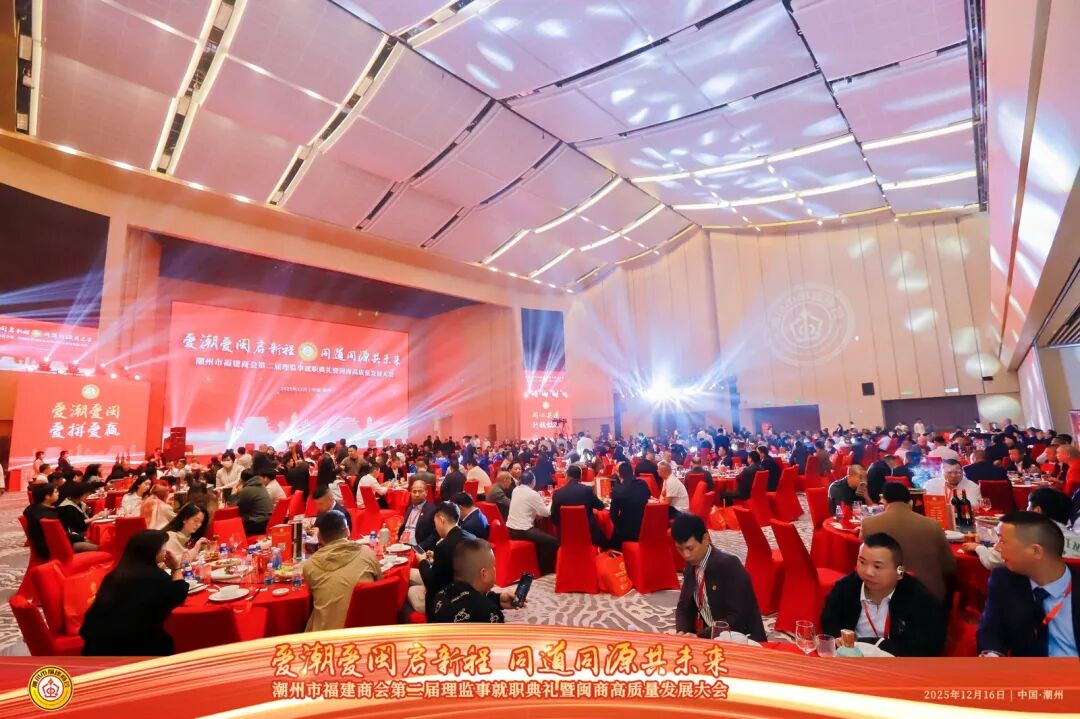 2025年12月16日,以“爱潮爱闽启新程,同道同源共未来”为主题的潮州市福建商会第二届理监事就职典礼在潮州市国际会展中心隆重举行。典礼现场高朋满座,乡情洋溢,共同见证了潮州市福建商会发展历程中的重要时刻。广东省福建商会常务副会长沈林伟就任潮州市福建商会第二届会长。广东省福建商会执行会长徐丽萍,常务副会长吴木光、廖名建、刘锦麟、张培昆、黄天准,副会长赖礼晖、蔡桂锋等参加典礼。