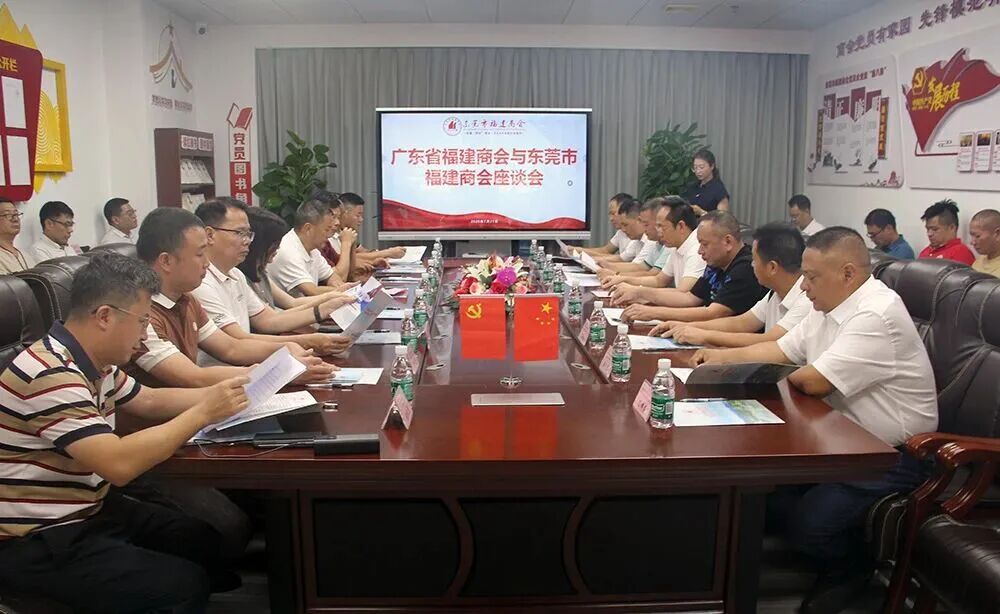 7月21日,广东省福建商会与东莞市福建商会举行座谈交流活动,共商在粤闽商发展大计。广东省福建商会秘书长朱东炫,执行会长聂静洁,常务副会长林叔权、刘三川、陈秋亮、洪启阳,副会长张文贤、赖礼晖,东莞市福建商会会长黄寿强,监事长吴继忠,执行会长郑冬书,常务副会长兼东城办事处(分会)会长陈永德,常务副会长兼石碣办事处(分会)会长洪华鹏,常务副会长兼桥头办事处(分会)会长洪灯良,常务副会长兼万江办事处(分会)会长易忠俤,常务副会长兼滨海湾办事处(分会)会长陈帅荣等参加了本次座谈交流活动。