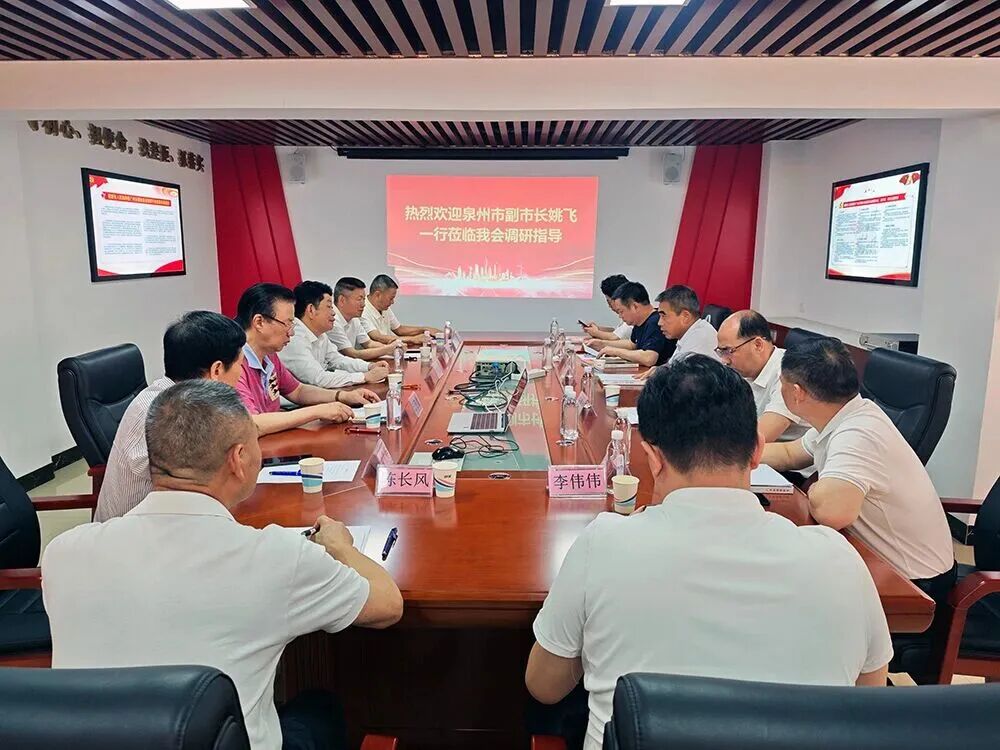 6月6日,泉州市副市长姚飞一行莅临广东省福建商会调研指导,并和商会企业家座谈交流。福建省政府驻广州办事处副主任赖再生,泉州市政府办公室副主任连凤清,泉州市政府驻深圳(广州)办事处原主任王志明,泉州市政府驻深圳(广州)办事处主任吴荣亮等陪同。全国政协委员、会长许明金,理事长王诗增,秘书长朱东炫,执行秘书长陈长风等参加座谈会。