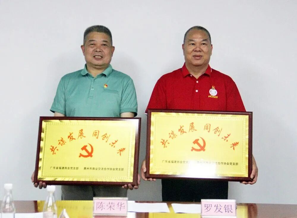 10月15日,广东省福建商会党支部与惠州市商业交流合作协会党支部在广东省福建商会会议室开展共建活动。广东省福建商会监事长、党支部书记陈荣华,组织委员陈长风,宣传委员黄敏,惠州市商业交流合作协会创会会长、永久荣誉会长、党支部书记罗发银,党支部副书记赖星云,组织委员罗勇彬,纪检委员黄河,宣传委员方晓华等二十余名党员参加活动。
