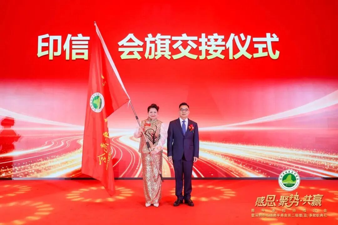 11月27日,深圳市福建南平商会第二届理监事会就职典礼在深圳银湖会议中心隆重举行。广东省福建商会执行会长徐丽萍就任深圳市福建南平商会新一届会长。广东省福建商会会长许明金出席典礼并发表讲话。常务副会长洪启阳,副会长魏俊华、陈志坚、庄健龙,执行秘书长陈长风参加活动。