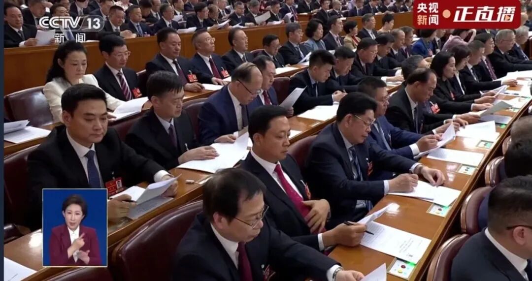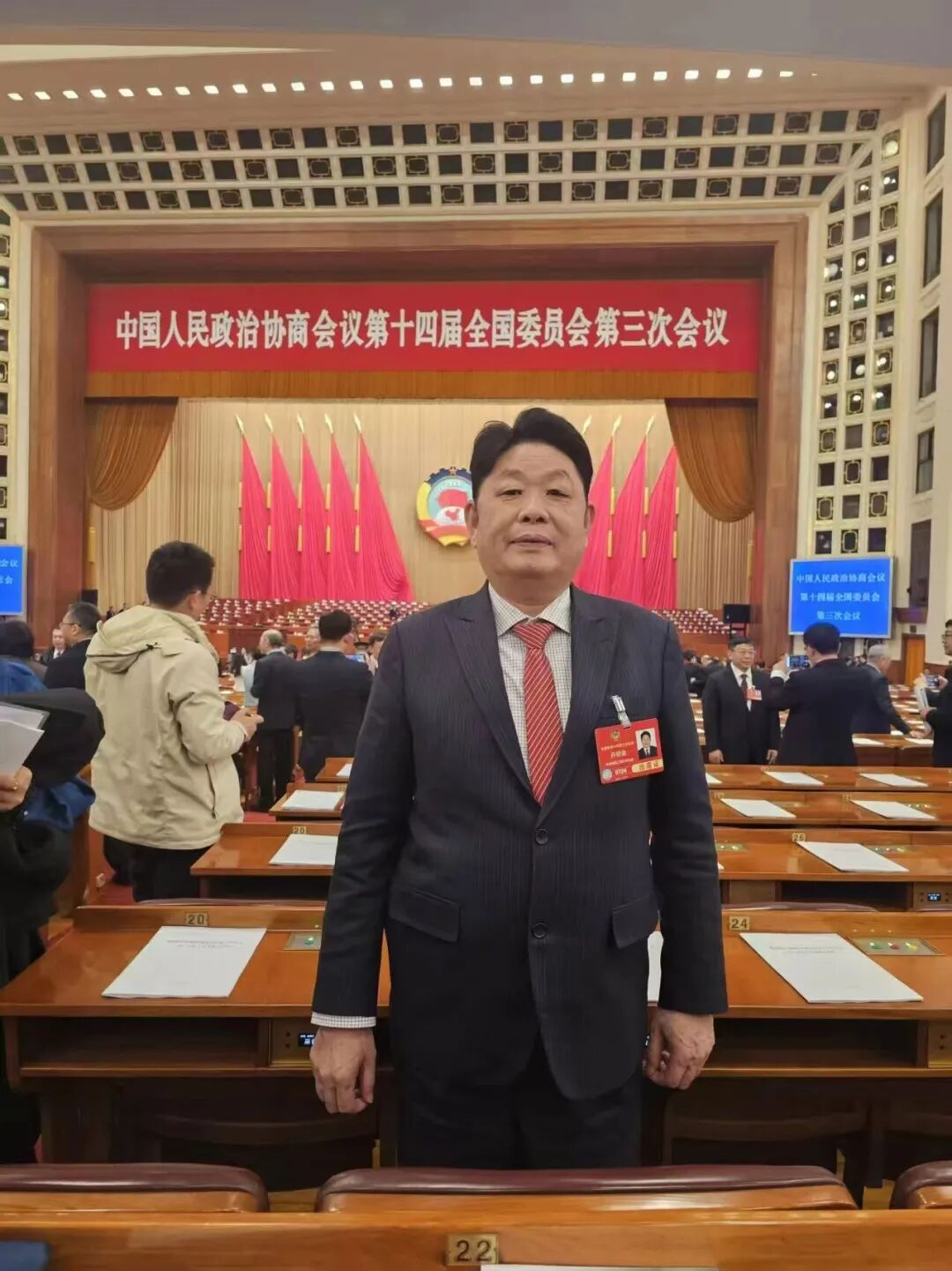全国政协委员、广东省福建商会会长许明金(一排左三)出席全国政协十四届三次会议