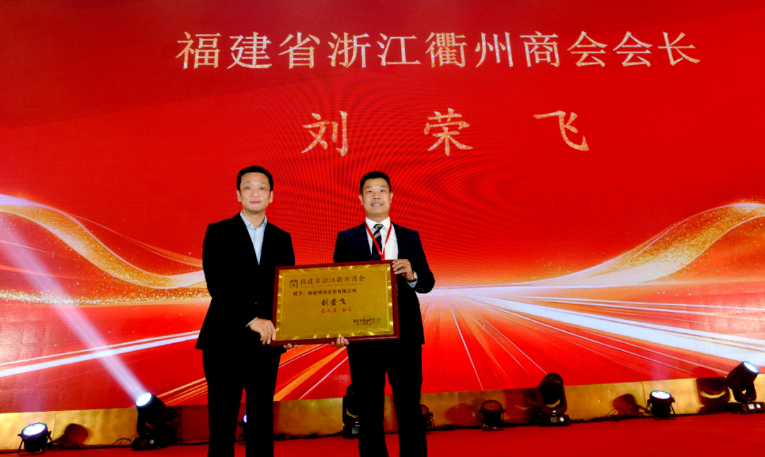 (衢州市副市长郑河江给会长刘荣飞授牌)