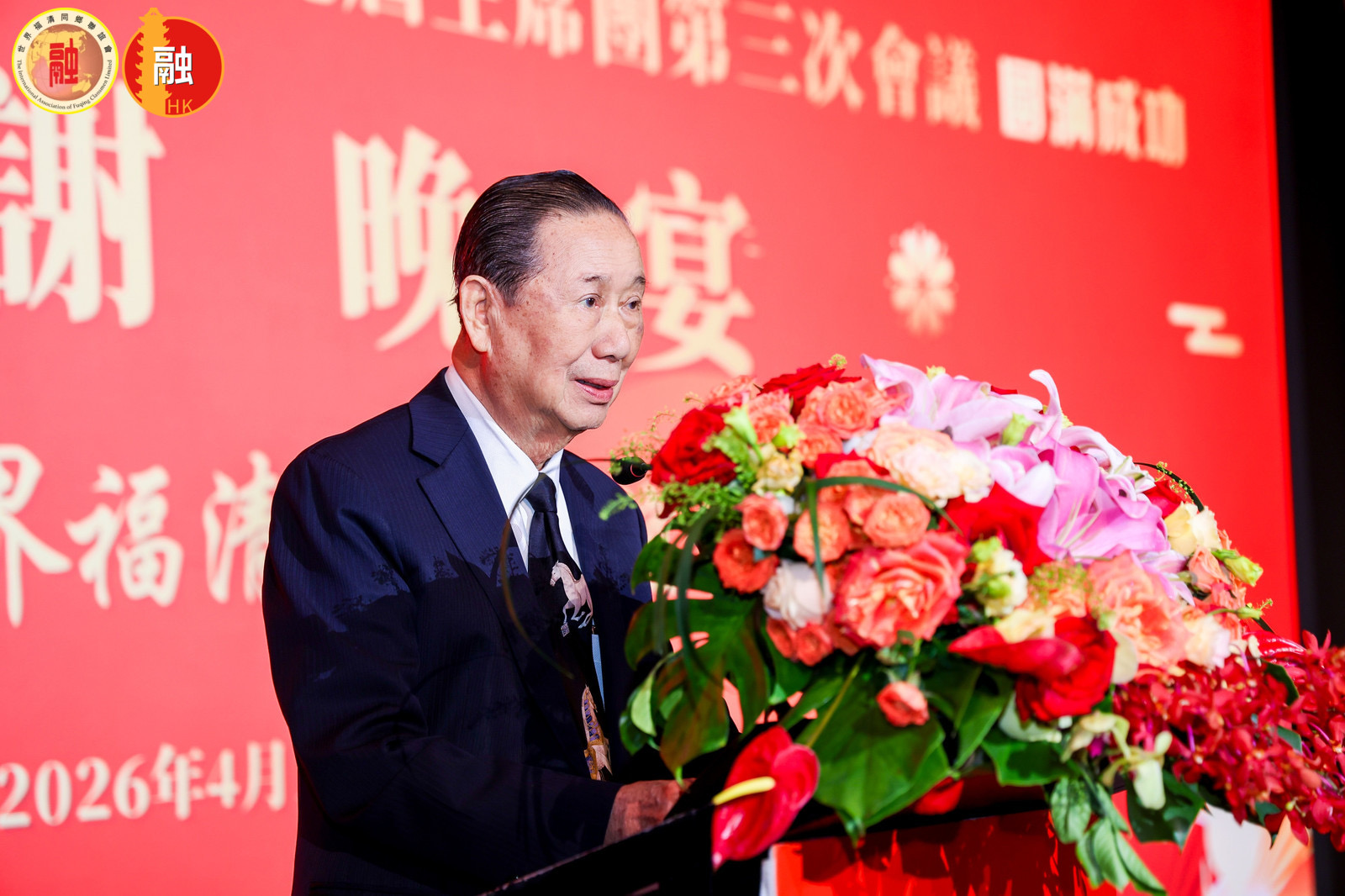 世联常务副主席、香港福清同乡联谊会会长余良基在晚宴上致辞,他对各位乡亲、嘉宾的到来表示热烈欢迎,感谢世联对香港福清同乡联谊会的信任与支持,坦言能承办此次会议相关活动,是香港福清同乡联谊会的荣幸,愿尽地主之谊,全力做好服务保障工作,希望各位乡亲在港期间宾至如归,借助此次盛会深化交流、凝聚共识,共同为世联发展和家乡建设贡献力量。