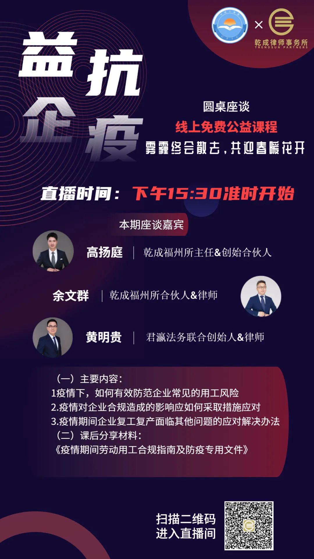 五是开设微课“助”企。利用网络开设益企抗“疫”系列微课,主动为企业打赢疫情防控阻击战送政策、送法律、送方法。2月23日,福建省工商联法律维权服务中心联合福建拓维律师事务所,举办《疫情下,中小企业如何借助政策及技巧进行自我拯救》第一期线上公益微课,介绍疫情下中小企业现阶段困境基础上,针对政府为扶持企业出台的相关税收优惠、金融借贷和财政专项补贴政策进行解读,探讨疫情下中小企业未来的机遇与挑战,并重点从情理法的角度向企业传授在房租、用工、货物买卖等方面的谈判技巧。全省各设区市工商联及所属商会协会等738人次在线参加。微课结束后,主讲律师对与会人员线上提出的问题进行热心解答,还提供了拓维律师事务所制作的疫情期间政策汇编、法律文本、法律问题解答及操作指引,获得与会者的一致好评。2月29日下午,福建省工商联法律维权服务中心联合北京乾成(福州)律师事务所、君瀛法务机构,共同开展围绕以《疫情期企业用工风险与合规运营建议》为主题的第二期线上公益直播课,为疫情期间的中小企业“加油充电”。各设区市工商联及所属商会会员企业、全国各地中小企业家及相关从业人员等1000多人次进行直播分享,针对当下企业劳动关系等若干热点问题进行逐一探讨与解答,并发表了关于企业合规运营相关建议,以帮助各企业共度难关。