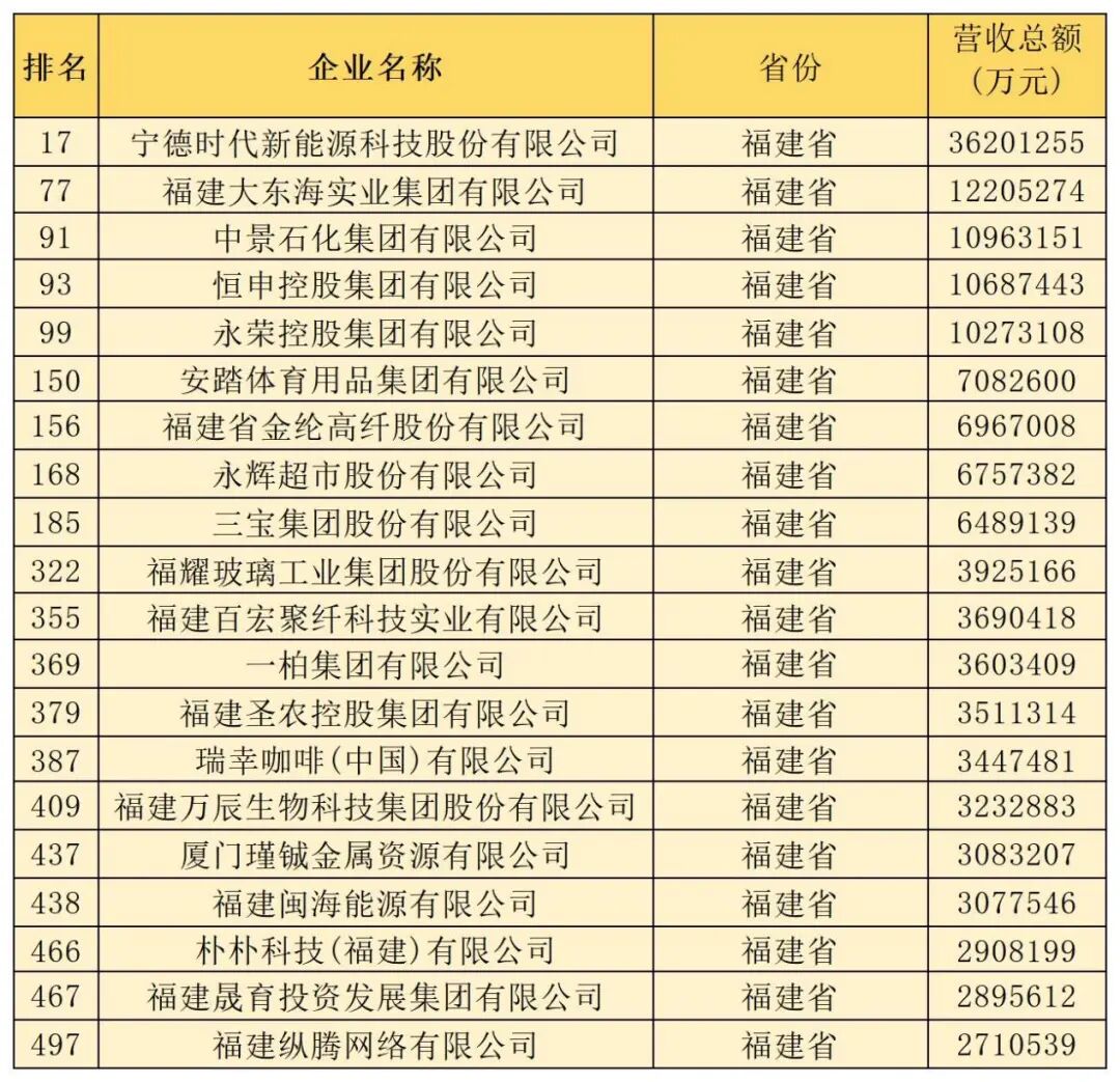 而在榜单中,福建企业以稳健增长与创新突破的亮眼表现,展现出区域经济强劲的韧性与活力。此次共20家闽企上榜,比上年增加6家,营收总额突破约1.44万亿元。在复杂经济环境中持续夯实竞争力根基,尤其以新能源、新材料为代表的高新制造业正成为驱动福建产业升级的核心引擎。