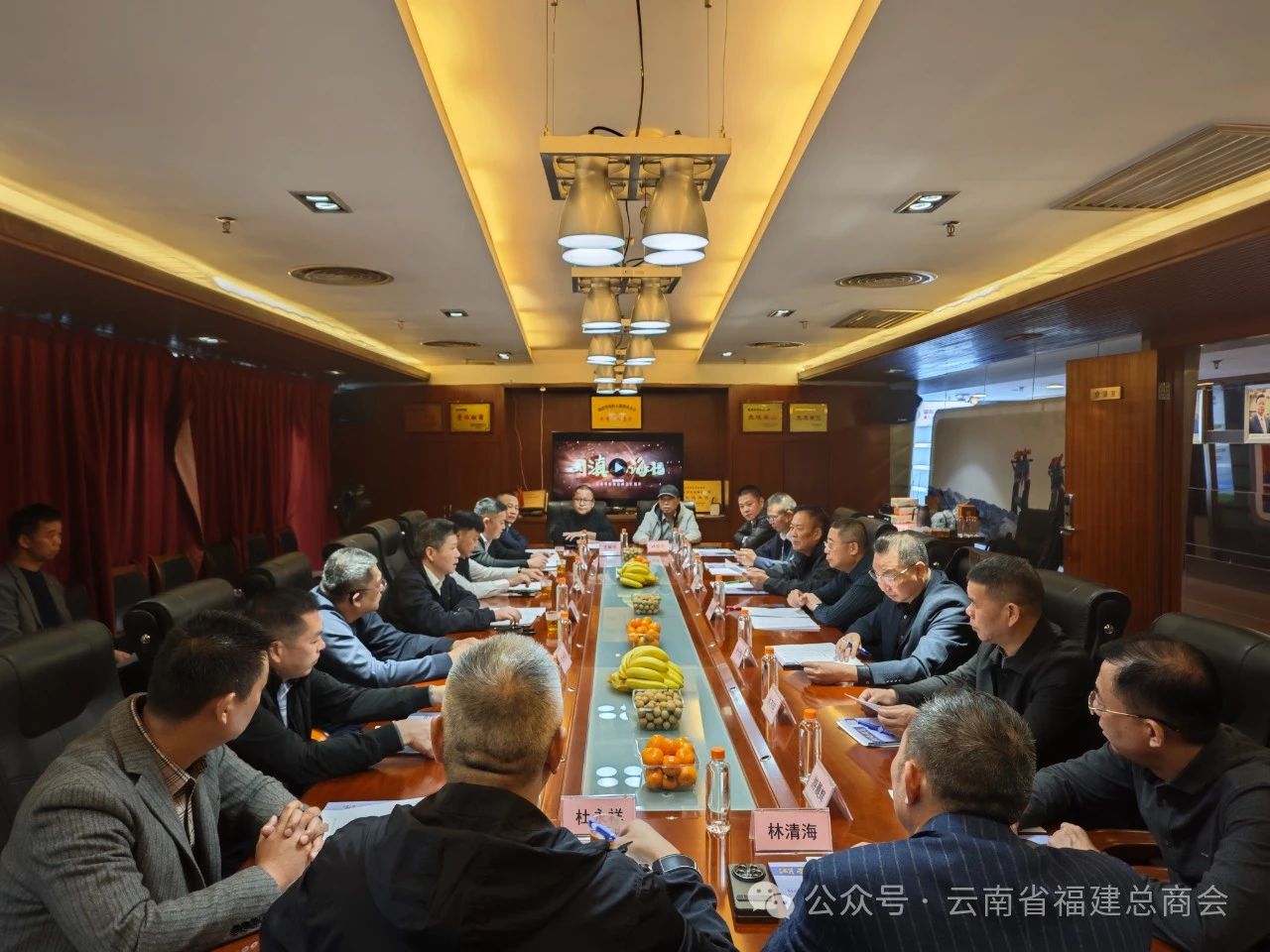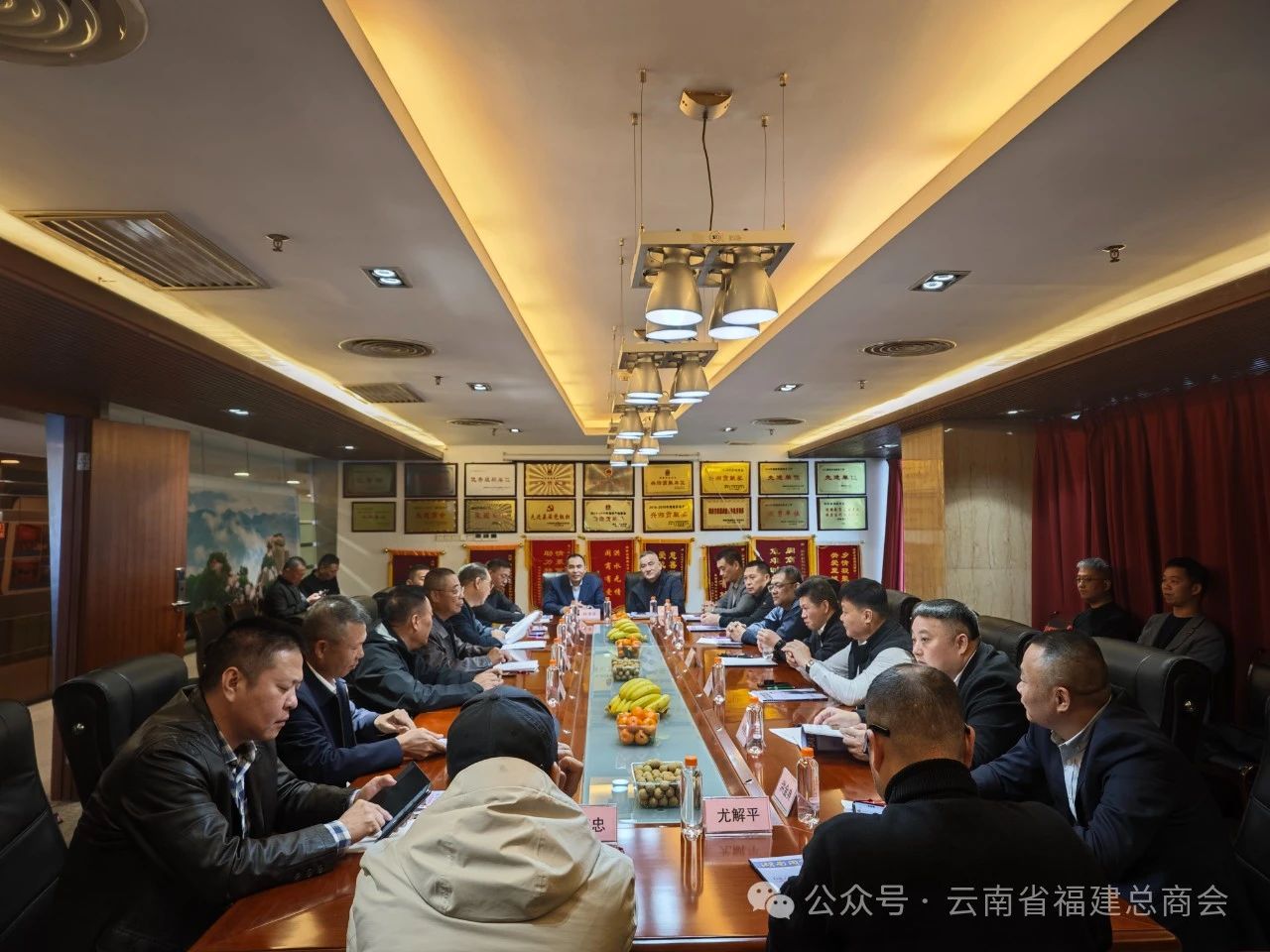 在交流座谈前,云南省福建总商会一行领导在湖南省福建总商会会长吴培辉的陪同下,先后参观了商会文化墙、办公区和商会宣传片,并赠送了纪念品。