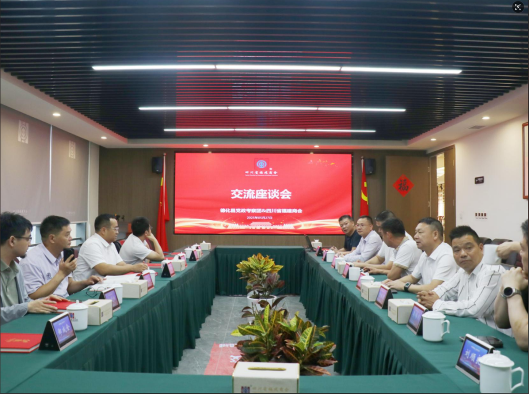 2025年5月27日下午,福建省德化县委书记方俊钦领队德化县文化体育和旅游局局长黄鹏辉,德化县陶瓷办副主任、陶瓷发展中心主任赖诗渊、德化县委办副主任陈剑峰以及非遗传承人代表莅临四川省福建商会调研考察。四川省福建商会执行会长曾振辉,商会常务副会长陈发宝,泉州市人民政府驻成都办事处主任杨群晖,中建海峡西南分公司副总经理童福越,成都市德辉建材有限公司曾振孝,武汉长兴集团董事长助理李伟杰以及商会秘书处相关人员参加座谈交流。