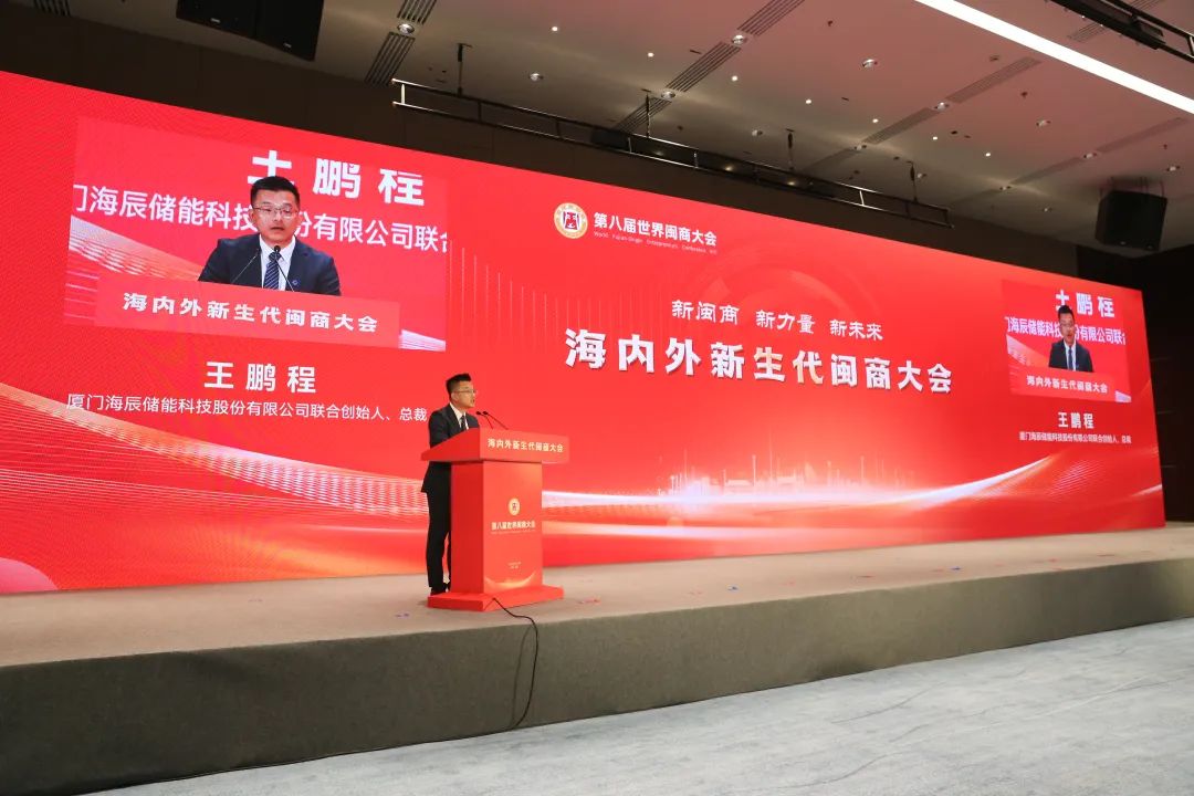 厦门海辰储能科技联合创始人王鹏程提出“以绿色能源照亮全球”的愿景,强调将企业战略与福建发展深度融合;