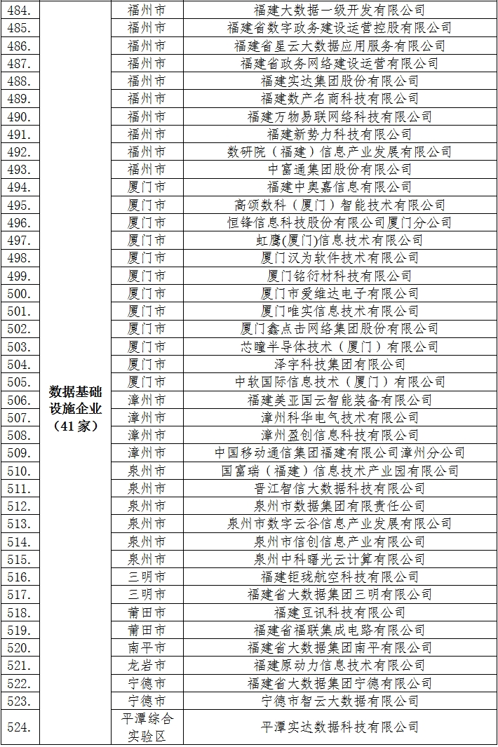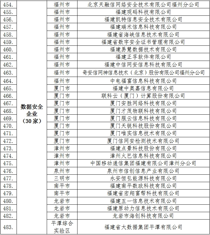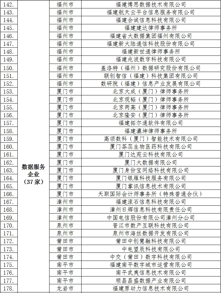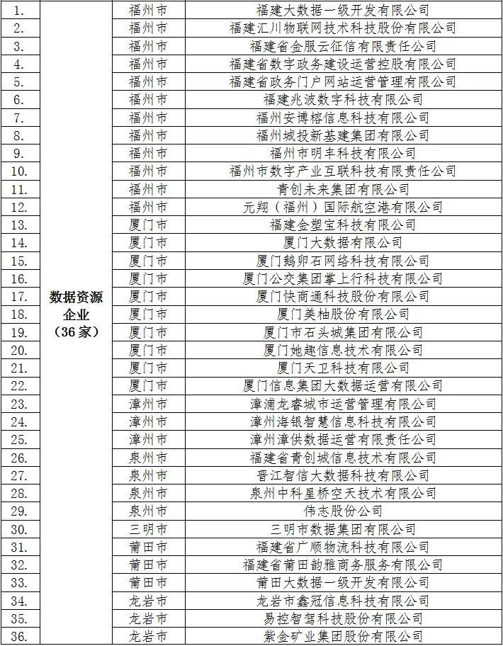 福建省数据管理局关于公布我省第一批数据企业名单的通知