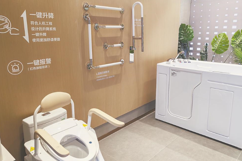 柯月香如今使用的卫浴产品就是来自距离她家不远的九牧集团。记者驱车来到50公里外的南安市九牧集团技术体验中心,在这家国内卫浴龙头企业专设的适老化产品展区中,体验到适老化产品满满的科技感。