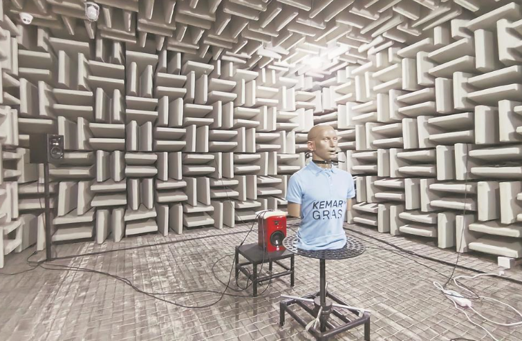 “这是目前规模位于厦门前列的全消声实验室,室内的背景噪声可控制在11分贝以下。”对着实验室中心的假人模型,欧仕达声学工程师介绍,公司产品的声学性能测试、研发所需的声学实验都在此进行。“可别以为这只是个塑料模特,它集成了传感器和信号传输系统,目的是为了模拟最真实的人体使用场景。”