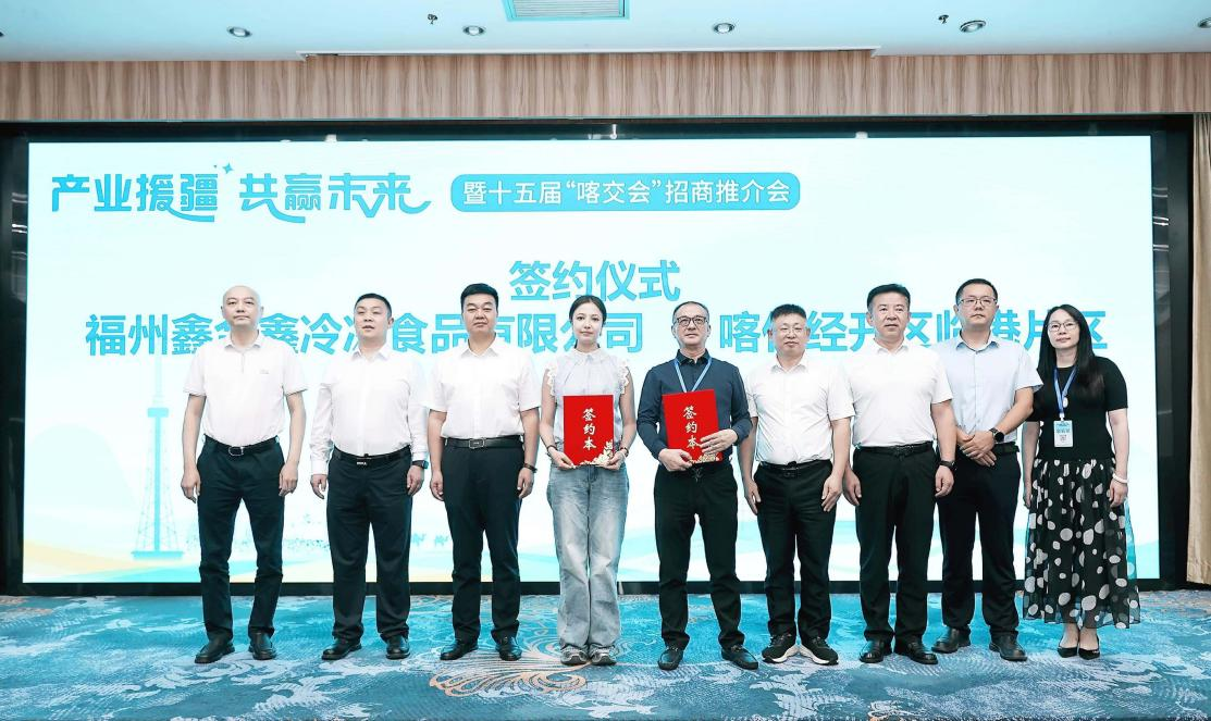 在签约仪式上,福建省住宿业协会和叶城县人民政府代表、福州鑫金鑫冷冻食品有限公司和喀什经开区代表现场签署战略合作框架协议,涵盖集文化旅游、冷冻仓储、物流配送、商贸流通、科学数据分析、咨询服务等业务领域,为福建与喀什的产业协作注入新动能。