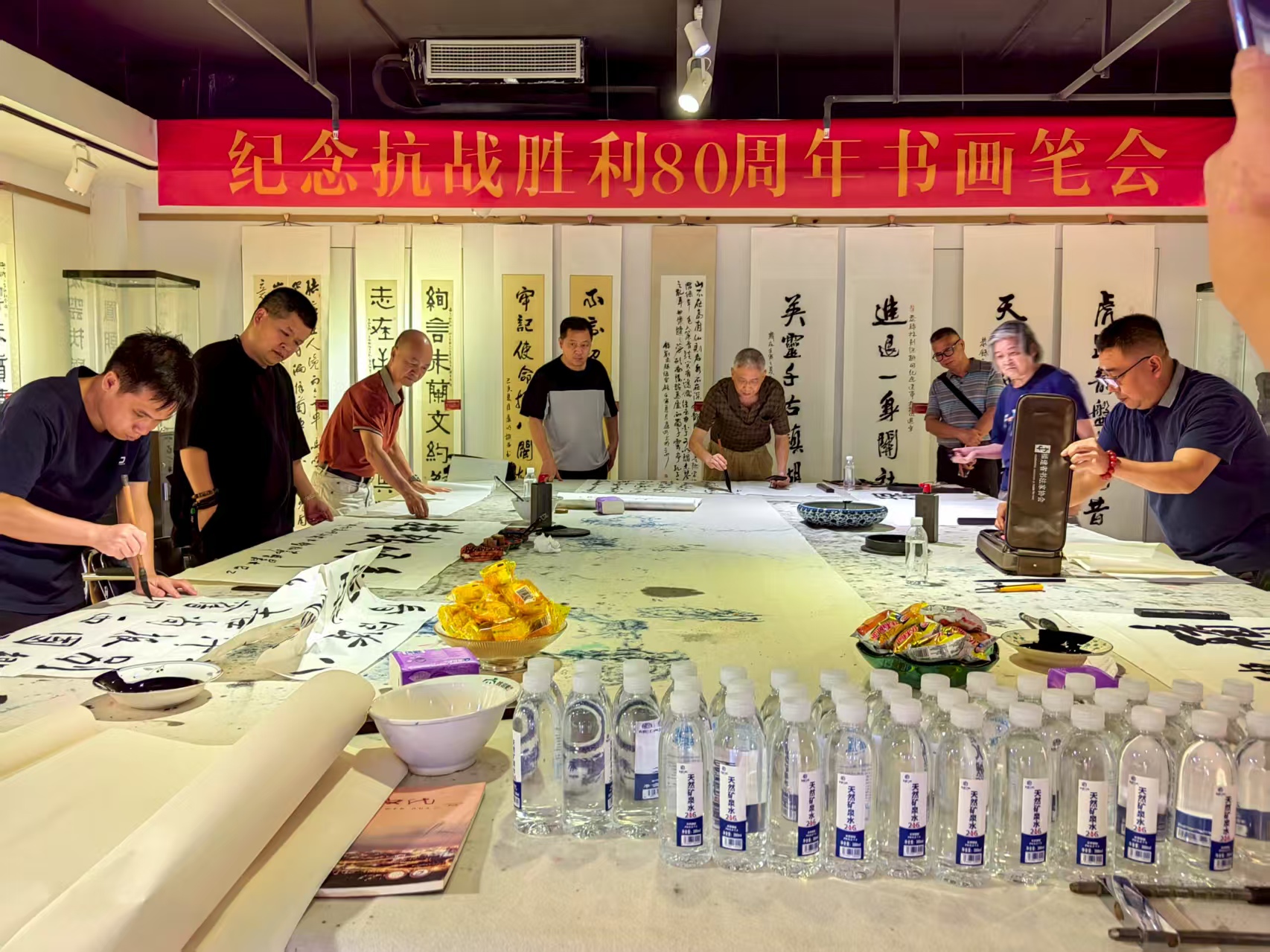 开幕式结束后,还举行了“纪念抗战胜利80周年书画笔会”。艺术家们再次挥毫泼墨,用饱含深情的笔触描绘出民族的铁血忠魂,讴歌和平盛世的美好愿景。在笔墨的交融中,抗战精神被赋予了新的艺术生命力。