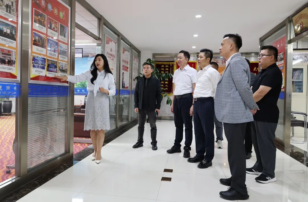黑龙江省福建总商会秘书长汤丹妮首先带领郑国全会长一行参观商会文化墙,详细介绍了商会的发展历程、组织架构、品牌活动及党建成果。