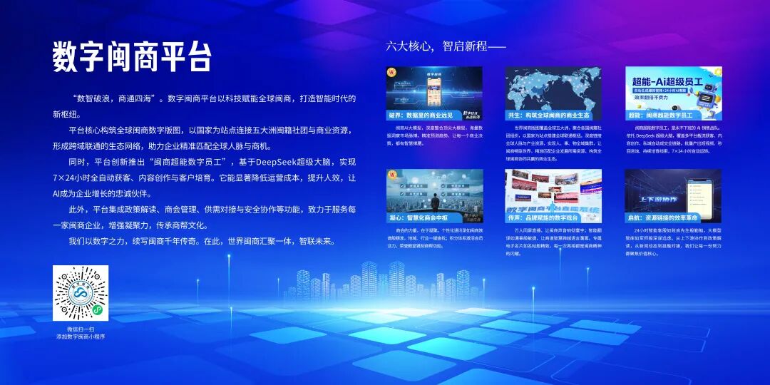 平台核心在于构建全球闽商数字版图,以国家为节点连接五大洲闽籍社团与商业资源,形成跨域联通的生态网络,助力企业精准链接全球人脉与商机。同时,平台创新推出“闽商超能数字员工”,让AI成为企业增长的忠实伙伴。