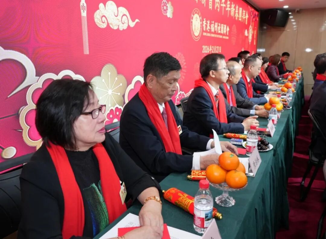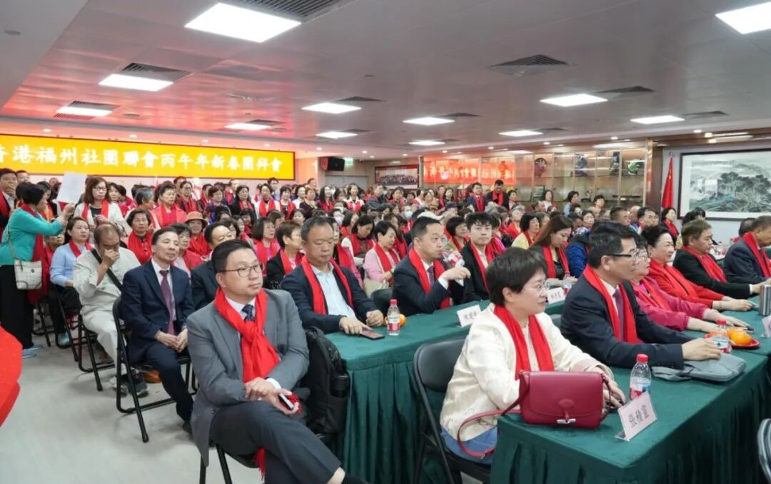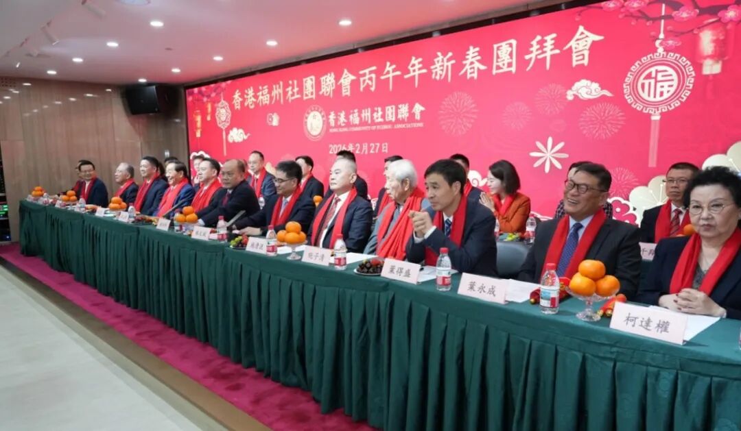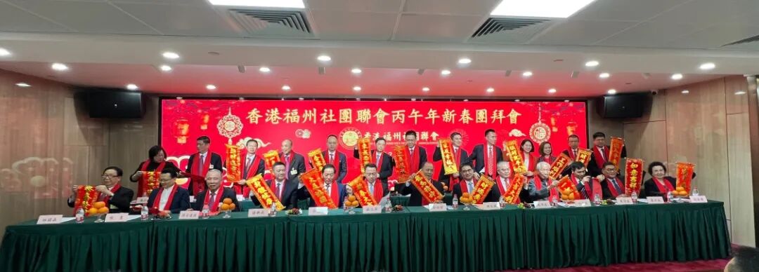 香港福州社團聯會訊 金馬賀歲,福滿香江。正月十一(2月27日),香港福州社團聯會於北角會所隆重舉行丙午馬年新春團拜。會所內外張燈結綵,喜氣洋洋,精心佈置的現場洋溢著濃濃的節日氣氛。與會嘉賓與榕籍鄉親們身著節日盛裝,佩戴象徵吉祥的紅色圍巾,喜笑顏開,喜聚一堂,共賀新春,同叙鄉情。