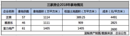 蓝鲸房产梳理发现,截至2018年年末,正荣地产的土地储备为2456万平方米,权益土储面积为1300万平方米。其中,2018年,正荣地产共获取了57宗土地,拿地面积为1114万平方米,但其权面积益只有389.25万平米,而同期雅居乐的权益土地面积为909万平米,富力地产为1405万平方米。由此来看,正荣地产手里的真实土储面积总量并不多。