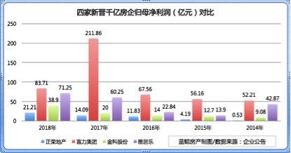 正荣、富力、金科、雅居乐四家新晋房企归母净利润对比