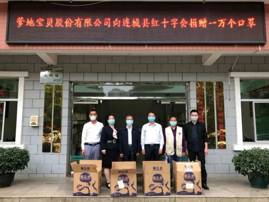 3月1日,爹地宝贝股份有限公司向连城县红十字会捐赠一万个口罩,有力地支持了革命老区农村基层一线人员防疫需求。其中,捐赠给莲峰镇人民政府8000个口罩、连城县城市管理局1000个口罩、连城县农业农村局1000个口罩。连城县政协副主席、县工商联主席罗文谦,县红十字会会长项其余,莲峰镇党委书记吴淑友、省工商联派驻姚坊村驻村书记郑芷、县城市管理局、县农业农村局代表等参加了捐赠仪式。