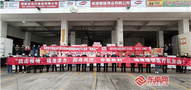 3月2日上午,承载着满满爱心,一支运载着1784箱海产品的车队从福州市马尾区发车,为奋战在抗疫一线的福建援助湖北医疗队送去“福鱼味”,该批物资由福建侨资企业捐助。
