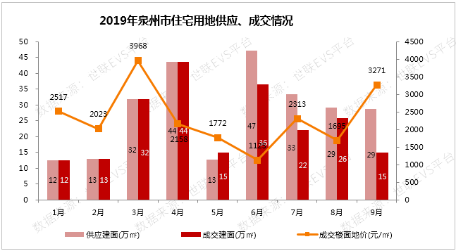 楼面地价:2019年9月,泉州市住宅用地成交楼面地价3271元/平方米,3月楼面地价最大,为3968元/平方米。