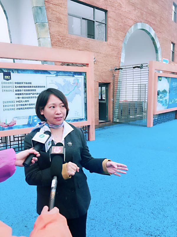 新蓝海董事长陈小兴介绍了瓷天下与瓷文化、海丝文化的渊源以及本次活动宗旨。她表示,中国瓷天下旅游区是一个以海丝瓷路文化为灵魂的文创景区,“瓷天下”即“立足陶瓷 面向天下”做海丝文章,它既迎合了“一带一路”倡议,也迎合了“文化”与“旅游”融合的国策。作为中国瓷天下旅游区的首期项目,海丝精灵谷就是借助文化创意手段将闽清东桥源远流长的海丝陶瓷文化开发成好玩、好看、可游、可学的旅游产品,使游客不仅可以在游览中感受到旅游的乐趣与休闲的放松,聆听海丝瓷路的奇妙故事,体验海丝瓷路的奇妙旅程,还可以深入体验“一带一路”沿线各国的文化和民俗风情,这是新蓝海集团在文旅融合方面所做的一次创造性探索,目前已成为全国文创旅游的典范、第五代旅游产品的代表。她还介绍,这次“复燃千年窑火 再现海丝文化”活动旨在通过邀请广大游客参与手作陶艺、古法造窑、古式烧窑、古方开窑及参观海丝瓷路文化再现展览等,让大家充分了解和体验古窑文化、陶瓷文化与海丝文化,让千年海丝瓷路文化得到更好的保护和传承。为了实现这个目标,新蓝海集团前段时间在瓷天下-海丝精灵谷景区里加班加点新增了不少有关海丝、陶瓷、义窑、南木墩文化遗址等科普性景点,接下来还会丰富和提升《海丝传奇》大秀。