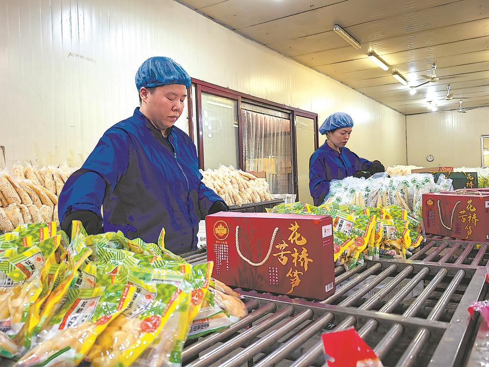 在夷山物产的车间内,工人将花桥苦笋产品装进礼盒。 本报记者 郑晓强 摄