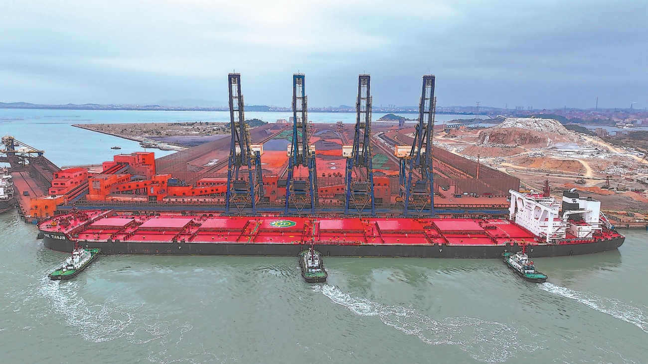 铁矿石货轮靠泊罗屿作业区。(资料图片)