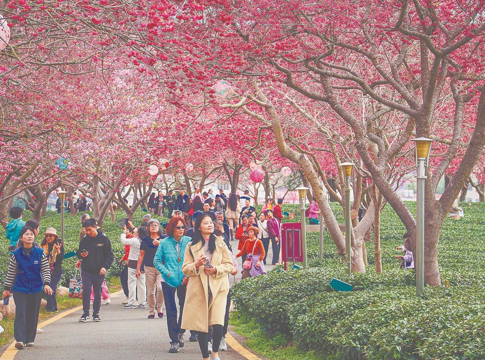 漳平永福杜鹃花盛开,市民正在赏花。 章宸睿 摄