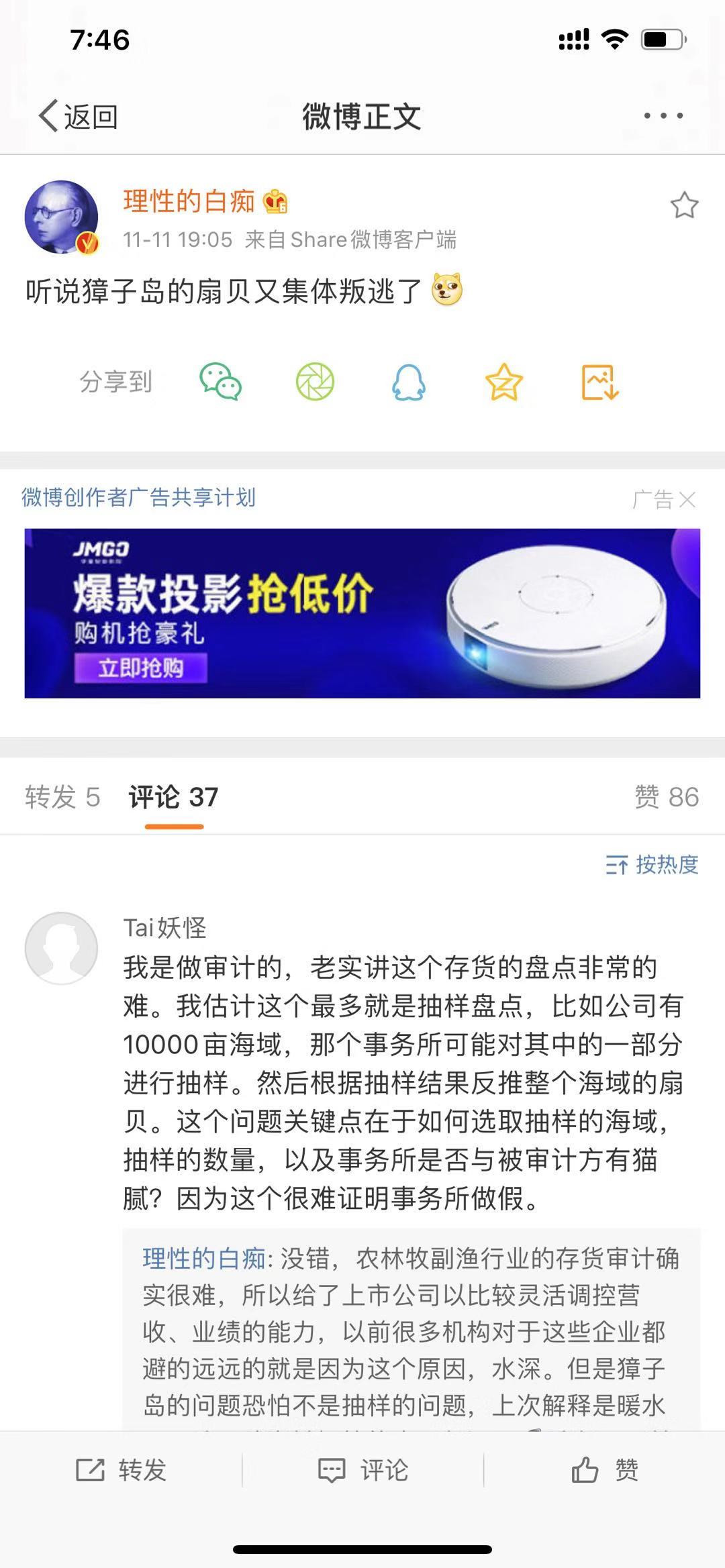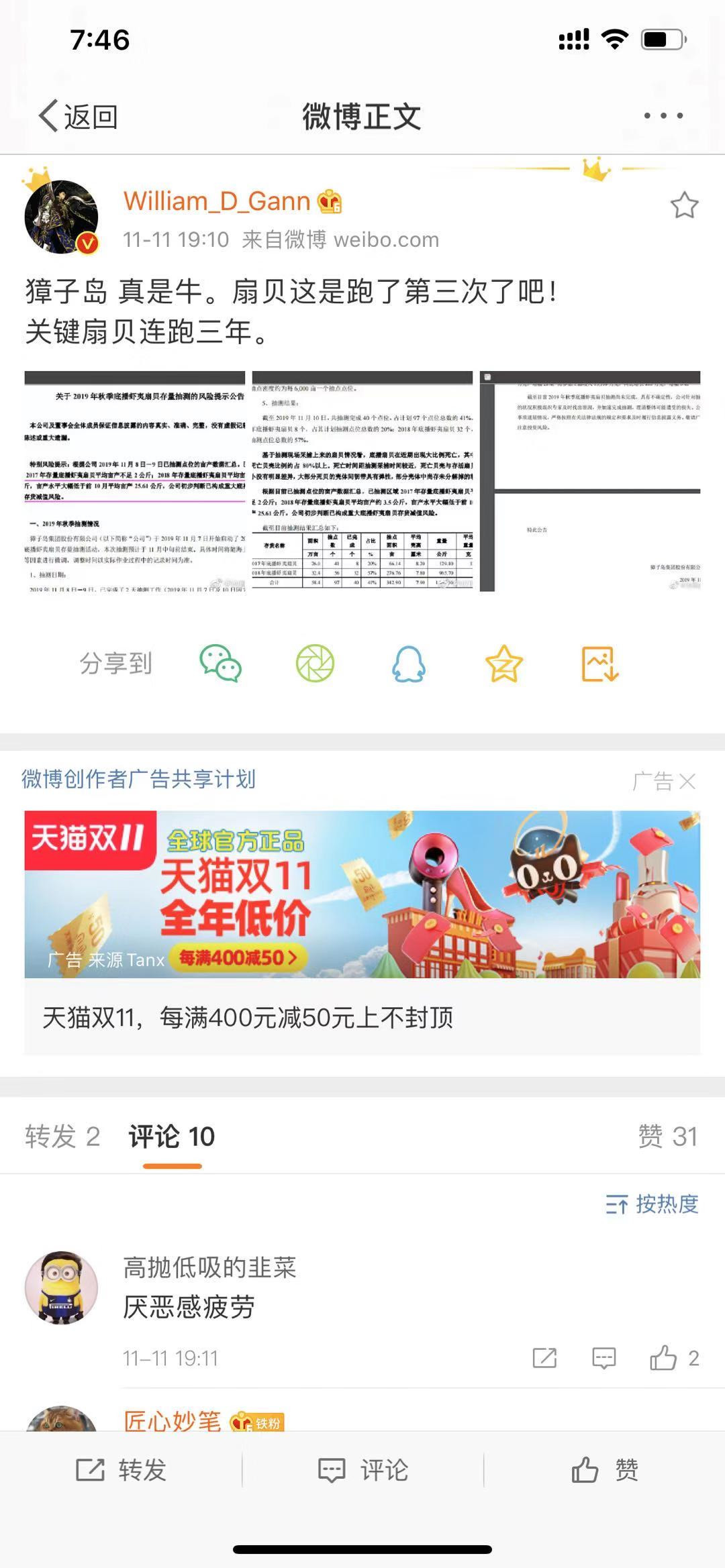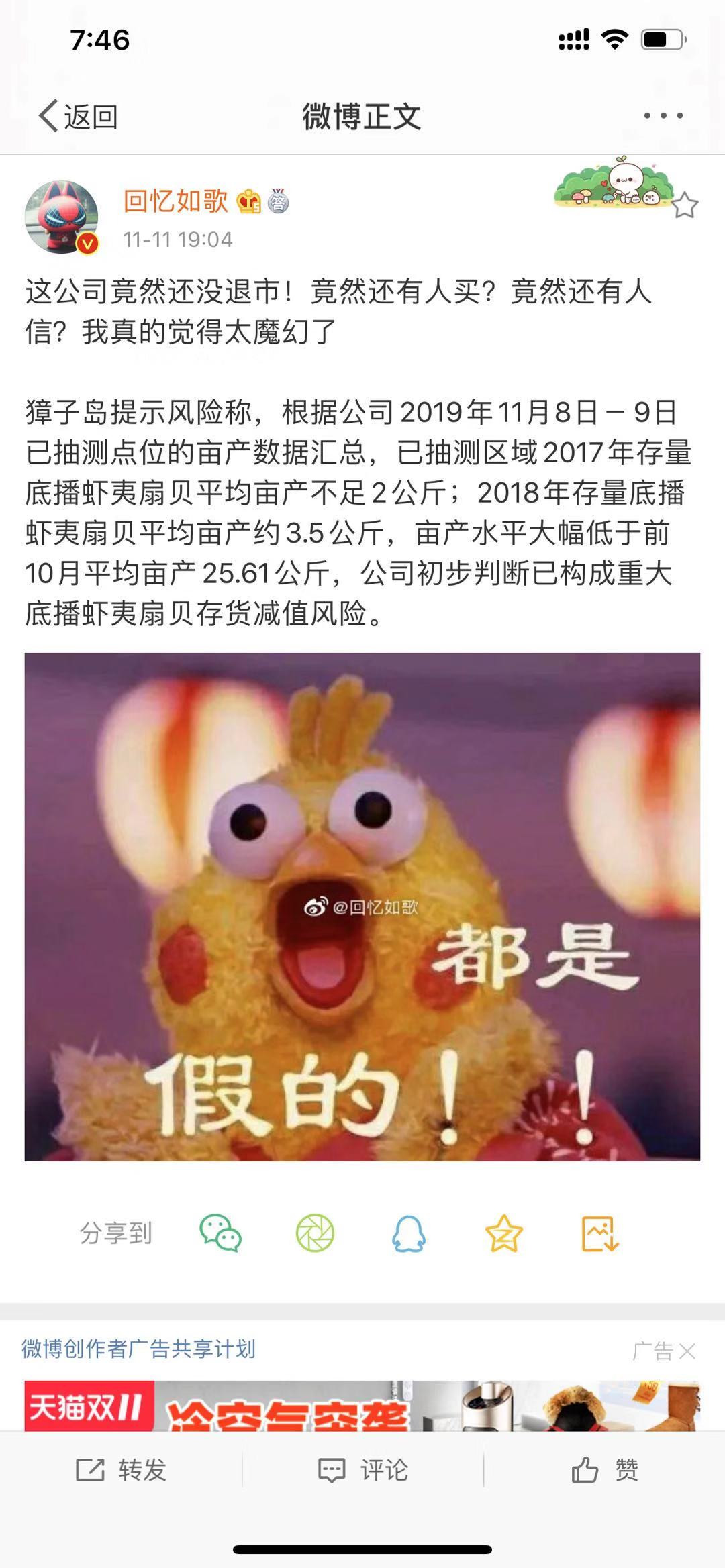 什么意思呢?就是说,正常情况一亩产20到30公斤的扇贝,突然就只剩下不到2公斤,亩产暴减超90%,这不就是扇贝又跑了么?
